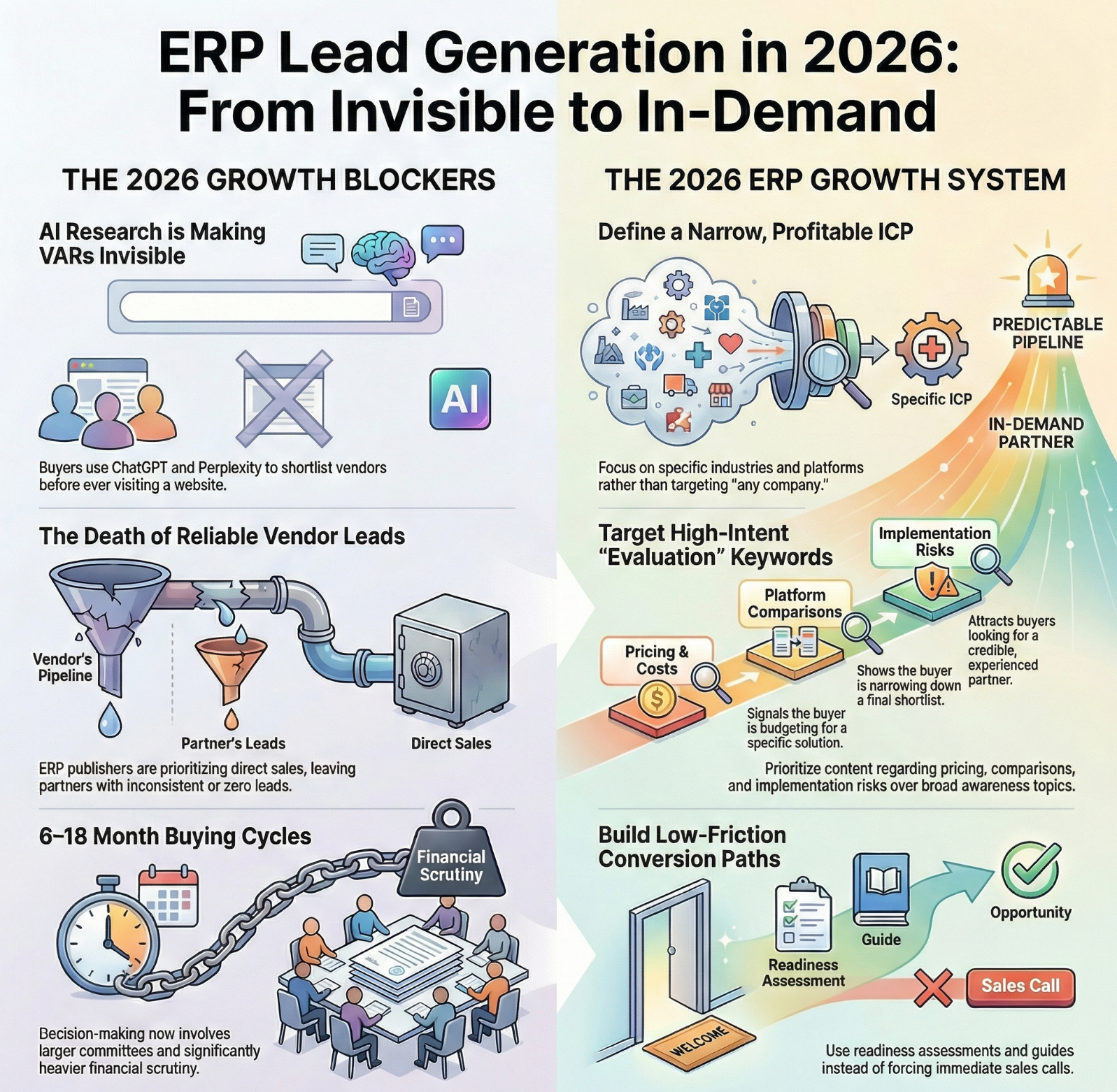 The ERP lead generation landscape has fundamentally shifted in recent years, creating new obstacles for VARs and consultants trying to build their businesses. What worked even 18 months ago may no longer be effective in today's environment. The rise of AI-powered search tools means prospects are getting answers to their ERP questions without ever visiting your website, while increased competition and economic uncertainty have made decision-makers more cautious about major software investments.